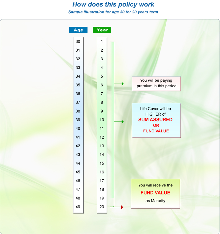 • In case of maturity the policyholder will get amount equal to the Fund value of the units.