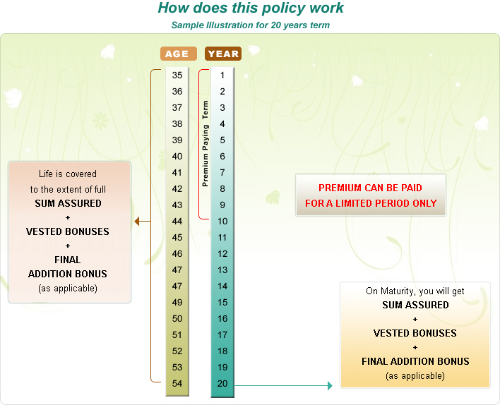 • LIFE COVER - Sum Assured + Bonus + Final Addition Bonus (as applicable)